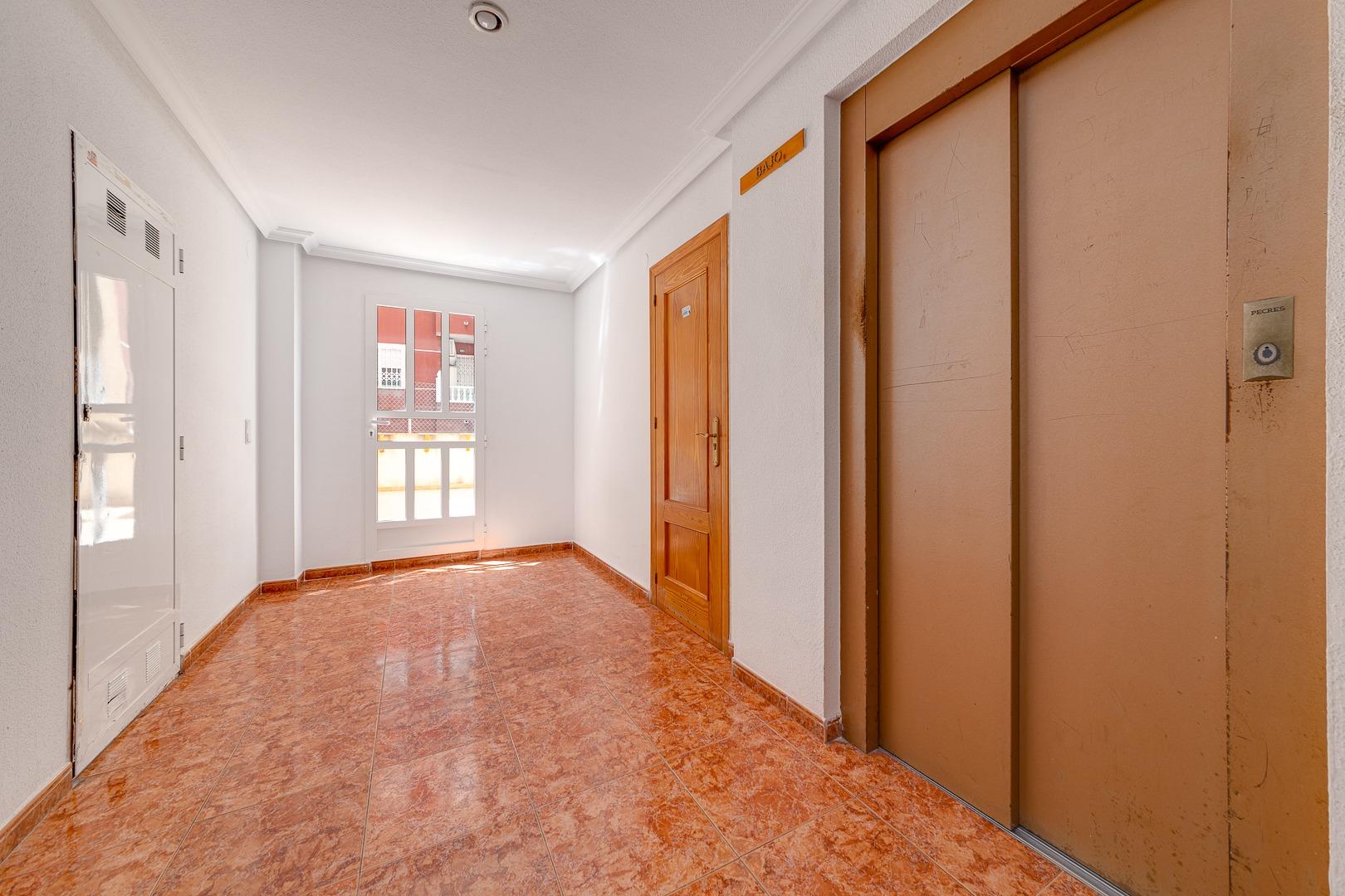 Apartment in Torrevieja located in the Playa del Cura area, just 650 metres from the beach. The property is located in a building with a lift and consists of 2 double bedrooms, one of which has fitted wardrobes, 1 full bathroom, a fitted and equipped kitchenette, a living room and a terrace overlooking the street. Close to amenities, supermarkets, restaurants, parks, health centres and schools. The Torrevieja seafront promenade is an 8-minute walk from the building entrance. Ideal for year-round living or as a sound investment. ~