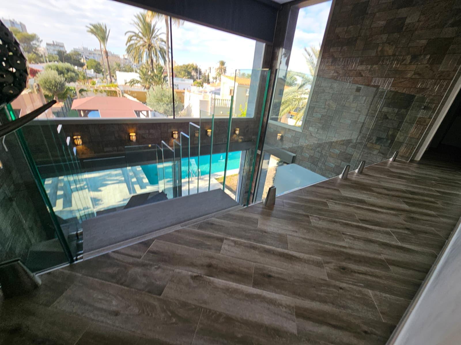 Luxury villa of 250 square meters built and with a plot of 600 square meters with a saltwater pool.~ The property consists of two floors, on the first floor you will find a large living / dining room with kitchen. A bedroom with en-suite bathroom and a toilet.~ Going up The double-glazed designer staircase leads to the second floor where there are two large bedrooms and a full bathroom with Jacuzzi to share located between the two bedrooms with access to it. It also has access to the large terrace that borders the house on two sides from which you have sea views.~ It has a barbecue area, garage for two vehicles, central heating with underfloor heating throughout the house, 6 solar panels, air conditioning, balcony overlooking the pool.~ The property It is located in one of the areas closest to the center and exit for Alicante - Murcia and quiet to live all year round. The nearest beach is Los Locos and is about a 10-minute walk away. You have nearby supermarkets, bars, / restaurants, beaches, health center and the center of Torrevieja is only 15/20 minutes walking.~ In the same urbanization ( Los Angeles ) there is a place where you will find a restaurant , a bar ( where they do karaoke , music etc ) They also have a swimming pool , sauna , paddle tennis courts , soccer and a gym~