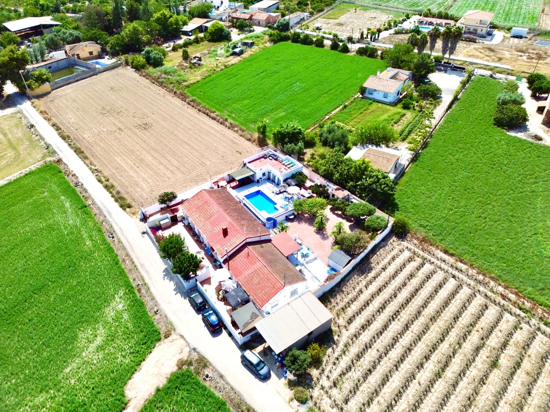 Chalet con de 7 dormitorios y 5 baños en Dolores, Alicante. Sumérjase en la perfecta armonía del encanto mediterráneo atemporal y el lujo contemporáneo con esta excepcional propiedad. Enclavada en un tranquilo entorno rural, esta casa de campo ofrece la tranquilidad de la vida rural a solo 5 minutos del centro de Dolores, a 15 minutos de las impresionantes playas de Guardamar y La Marina, y a 30 minutos del aeropuerto de Alicante. Para los amantes del golf, numerosos campos de campeonato se encuentran a 20 minutos.~El alojamiento se divide en 3 unidades independientes.~La residencia principal cuenta con 5 dormitorios y 3 baños, combinando el auténtico carácter español con interiores amplios y luminosos y acabados modernos. Las amplias salas de estar se integran a la perfección con dos cocinas independientes totalmente equipadas, perfectas para reuniones familiares y entretenimiento. Con dos entradas privadas, la casa principal se puede convertir fácilmente en dos salas de estar independientes, lo que la hace ideal para alojar a varias familias o invitados.~Además, una casa de invitados privada ofrece 2 dormitorios y 2 baños, lo que proporciona privacidad y comodidad a los visitantes. En total, la propiedad es ideal para hasta tres familias, ofreciendo espacio, independencia y privacidad para todos.~Ubicada en una parcela completamente amurallada de aproximadamente 1500 m², el terreno se ha mantenido meticulosamente y diseñado con esmero para que cada espacio celebre el estilo de vida español. Desde exuberantes jardines mediterráneos y terrazas sombreadas hasta múltiples zonas de barbacoa y una resplandeciente piscina, cada espacio invita a la relajación, las reuniones sociales y el disfrute del cálido clima. El terreno también cuenta con una variedad de árboles frutales, como limoneros y naranjos, que añaden belleza y un toque mediterráneo a su puerta.~Esta propiedad es más que un hogar, es un estilo de vida que combina la elegancia tradicional con el confort moderno en una ubicación inmejorable.~~
