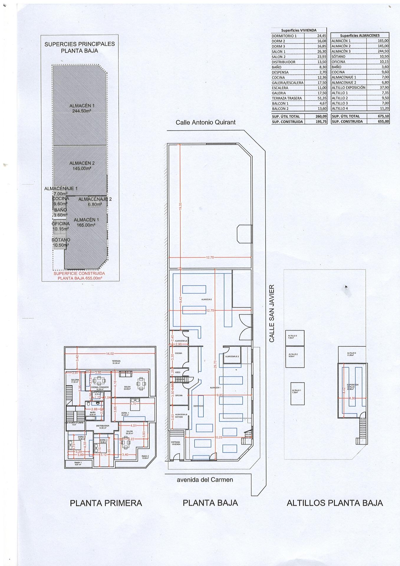 Presentamos esta excepcional propiedad ubicada en la mismísima Avda. del Carmen, un punto neurálgico de Cox que garantiza visibilidad constante. Estando en la Avenida su ubicación tiene una gran zona de aparcamiento lo que facilita el éxito de cualquier actividad.~~No nos encontramos con una propiedad singular sino con 3 propiedades prácticamente independientes en 1.~~La vivienda cuenta con una superficie construida de 260 m² distribuidos en una sola planta, ofreciendo tres amplios dormitorios dobles ideales para familias o como espacios multifuncionales. Dispone de un baño completo, dos salones luminosos –uno equipado con chimenea– y una cocina independiente junto a despensa. Además, podrás disfrutar de momentos al aire libre gracias a su amplia terraza y balcón.~~La oferta se complementa perfectamente ya que incluye también un negocio situado en la parte inferior de la vivienda así como una nave anexa cuya superficie total asciende a 675 m²; este espacio está diseñado estratégicamente e incluye áreas destinadas tanto para oficina como almacén además de contar con zona destinada a cocina y baño independientes.~~Esta es sin duda una oportunidad inmejorable no solo por el atractivo precio sino por las múltiples posibilidades que ofrece al combinar residencia privada acompañada por infraestructura comercial muy funcional.~