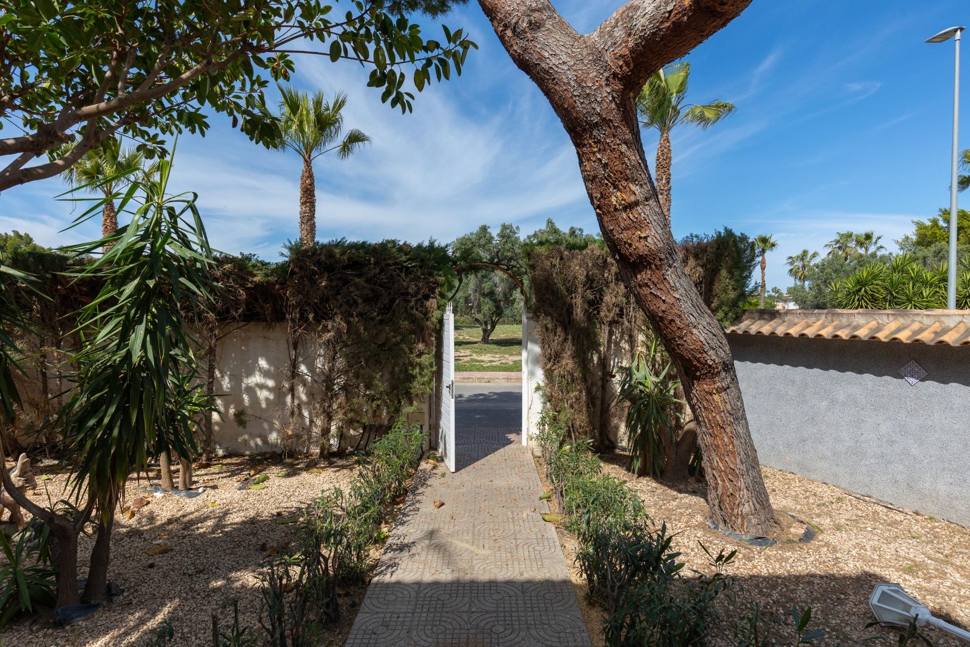 Hay casas que entran por los ojos.~Y hay casas que, cuando las entiendes bien, tienen mucho más valor del que aparentan al principio.~~Esta villa independiente en Doña Pepa (Ciudad Quesada), no busca impresionar con un estilo de revista ni seguir modas pasajeras.~Es una casa de 1996, y eso se nota en su estética. Pero también se nota en algo que hoy cuesta más encontrar: una construcción sólida, espacios generosos y una distribución realmente bien resuelta.~~Y ahí está una de sus grandes ventajas.~~Porque quien quiera actualizarla, no necesita rehacer la casa.~Necesita simplemente darle su estilo.~La base ya está hecha: buena estructura, buena distribución y una ubicación excelente.~En ese sentido, ofrece algo muy interesante: un verdadero lienzo en blanco para modernizar a nivel estético sin partir de cero.~~La vivienda está rodeada de vegetación frondosa, lo que aporta privacidad y una sensación de calma muy difícil de conseguir sin alejarse de todo. Aquí puedes estar en tu mundo sin renunciar a nada.~~El hotel La Laguna está a un par de minutos a pie, un lugar con gran ambiente y vida social.~Las prestigiosas playas de Guardamar y la vibrante Torrevieja están a sólo 10-15 minutos, y tanto Alicante ciudad como Murcia quedan a un paso, para cuando te apetece cambiar de aires o conectar con la ciudad europea que prefieras a solo un par de horas. ~~La casa se distribuye en tres plantas y cuenta con cinco dormitorios y cinco baños.~De los dormitorios, tres de ellos tienen baño en suite, lo que añade comodidad y autonomía, para la vida diaria y tambien para recibir a tus invitados de la forma más exclusiva. ~~En el exterior, la casa gana todavía más.~El jardín ofrece espacio para disfrutar de verdad, con piscina y zona de barbacoa, que convierten el día a día y los encuentros con familia o amigos en algo mucho más fácil y natural.~~Y el sótano suma todavía más espacio para tu forma de vivir: reuniones, celebraciones o una zona polivalente que encaje contigo.~~Esta no es una casa para quien busca algo ya decorado según la tendencia del momento.~Es para quien sabe ver más allá de lo superficial.~Para quien valora los metros, la distribución, la calidad de base y el potencial real de una vivienda bien ubicada.~~Una casa con fundamento.~Y con mucho margen para convertirla en algo muy personal.~~(Impuestos y gastos de compraventa no incluidos)~