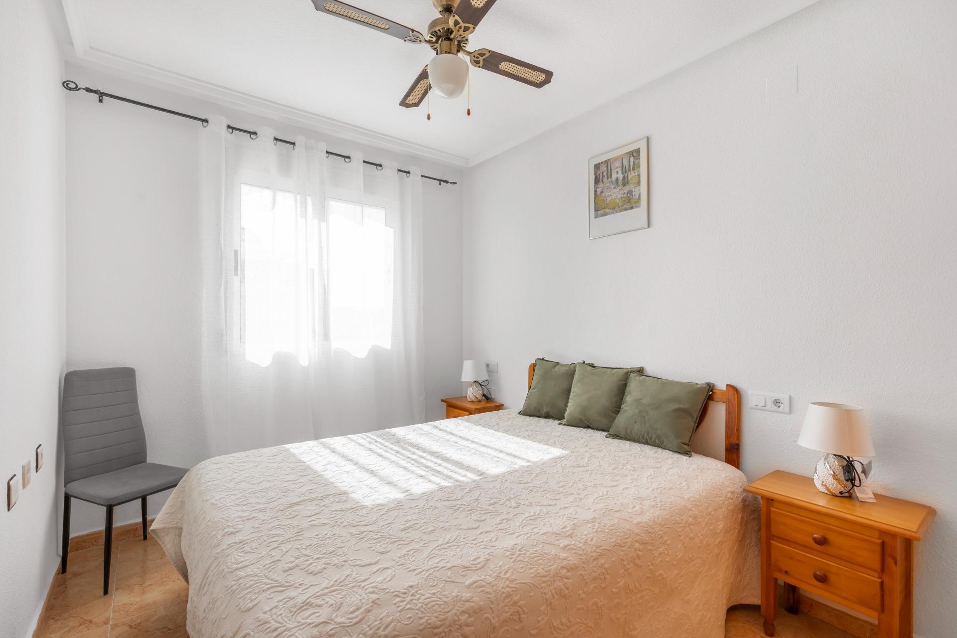 Te presentamos este encantador bungalow en planta alta, situado en la tranquila zona de Torreta Florida, a tan solo 10 minutos de la playa.~Con una superficie construida de 53 m² y 42 m² útiles, la vivienda ofrece dos dormitorios dobles, espaciosos y funcionales, junto con un baño completo que aporta comodidad al conjunto.~~La propiedad dispone de un amplio solárium privado de 36 m², perfecto para relajarse, tomar el sol o disfrutar de momentos al aire libre en familia. Además, cuenta con piscina comunitaria, ideal para refrescarse bajo el sol mediterráneo.~~El bungalow ha sido recientemente pintado y se vende completamente amueblado. Es importante tener en cuenta que la cocina deberá ser instalada por el futuro propietario, lo que ofrece la ventaja de diseñar un espacio totalmente nuevo y adaptado a sus gustos y necesidades.~~Gracias a su orientación oeste, la vivienda disfruta de una magnífica luminosidad durante las tardes, y su competitivo precio de solo 115.000 € la convierte en una excelente oportunidad tanto como residencia habitual como inversión vacacional en uno de los destinos más deseados de la Costa Blanca.~~