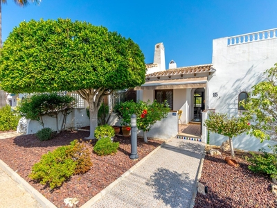 Te presentamos esta preciosa vivienda situada en la tranquila y cuidada urbanización Fortuna I, en Orihuela Costa, a solo unos pasos del prestigioso Campo de Golf de Villamartín, y muy cerca también de los reconocidos campos de Las Ramblas Golf y Campoamor Golf.~~Rodeada de un entorno natural excepcional y perfectamente conectada con servicios y zonas de ocio, esta propiedad es una oportunidad ideal tanto como residencia habitual como para disfrutar de unas vacaciones inolvidables en la Costa Blanca.~~Este encantador pareado de dos plantas, con el estilo típico de casa mediterránea, ofrece espacios luminosos y bien distribuidos. Al ingresar, nos recibe una terraza delantera privada. En la planta principal encontramos un amplio salón con chimenea de gas, muy luminoso, con acceso directo a una acogedora terraza equipada con toldo, barbacoa y espectaculares vistas abiertas al campo de golf y la naturaleza. Un lugar perfecto para disfrutar del café matutino, el aperitivo del mediodía o una copa de vino al atardecer.~~La cocina americana ha sido completamente renovada en un estilo moderno y elegante, y se conecta con una zona de comedor independiente. En esta misma planta se encuentra un aseo para invitados y un trastero exterior, ideal para bicicletas.~~El interior de la vivienda destaca por su encanto, con detalles como vigas de madera a la vista que aportan calidez y personalidad a cada estancia.~~Desde la terraza principal, una escalera exterior conduce al solárium privado, donde se puede tomar el sol con total intimidad, rodeado de un entorno verde y relajante.~~En la planta semi-sótano se ubican dos dormitorios dobles, cada uno con baño en suite. Ambos tienen salida directa a una gran terraza cubierta, con vistas despejadas al campo de golf y la vegetación circundante. Esta planta también dispone de un trastero interior adicional.~~A lo largo de los años, los propietarios han realizado numerosas mejoras orientadas a optimizar la calidad de vida, el confort y la eficiencia energética. Entre ellas destacan:~~Aire acondicionado nuevo en los dormitorios~~Sistema de agua caliente actualizado~~Lavadora de alta gama~~Renovación integral de cocina, suelos, terrazas, solárium y escaleras exteriores~~Refuerzos estructurales para mayor seguridad y durabilidad~~Mejoras en fontanería y grifería~~Toldos estratégicos en zonas clave para mayor confort~~Gracias a su privilegiada ubicación, rodeada de campos de golf de renombre y un entorno natural cuidado, esta propiedad es perfecta para los amantes del golf y para quienes valoran la tranquilidad, el bienestar y la calidad de vida.~~¡No dejes pasar esta magnífica oportunidad!~Contáctanos hoy mismo para concertar una visita sin compromiso. ¡Te encantará!~~~