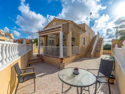 Encantadora villa independiente en Residencial Baños de Europa III – Torrevieja~~¿Buscas un lugar donde disfrutar del clima mediterráneo durante todo el año? Esta preciosa villa unifamiliar, ubicada en una de las zonas más tranquilas de Torrevieja, te enamorará. Situada en el residencial Baños de Europa III, rodeada de naturaleza y con acceso a piscina comunitaria, es el lugar perfecto para vivir o pasar tus vacaciones.~~La vivienda está distribuida en una sola planta y ofrece:~~2 dormitorios y 1 baño muy funcional.~~Luminoso salón-comedor, ideal para relajarte o compartir en familia.~~Cocina semiabierta y totalmente equipada, con acceso directo al jardín.~~Acogedora terraza acristalada con toldos, perfecta para desayunos, comidas o como espacio extra de descanso.~~En el exterior, disfrutarás de una amplia parcela de 111 m² que rodea la casa, con espacio para aparcar tu coche en la propiedad, trastero y varias zonas para relajarte o disfrutar con amigos y familiares.~~La joya de la vivienda es su solárium privado de 26 m², ideal para tomar el sol en total intimidad y contemplar las vistas abiertas al residencial y a la laguna salada de Torrevieja.~~Gracias a su excelente orientación, podrás disfrutar del sol durante todo el día y de una casa luminosa durante todo el año. Se vende completamente amueblada y lista para entrar a vivir.~~La ubicación es inmejorable: un entorno tranquilo, con piscina comunitaria para residentes, zonas verdes, todos los servicios a mano y a pocos minutos en bicicleta del centro de Torrevieja.~~No dejes escapar esta oportunidad. ¡Reserva tu visita hoy mismo y déjate conquistar por esta villa!~~~~