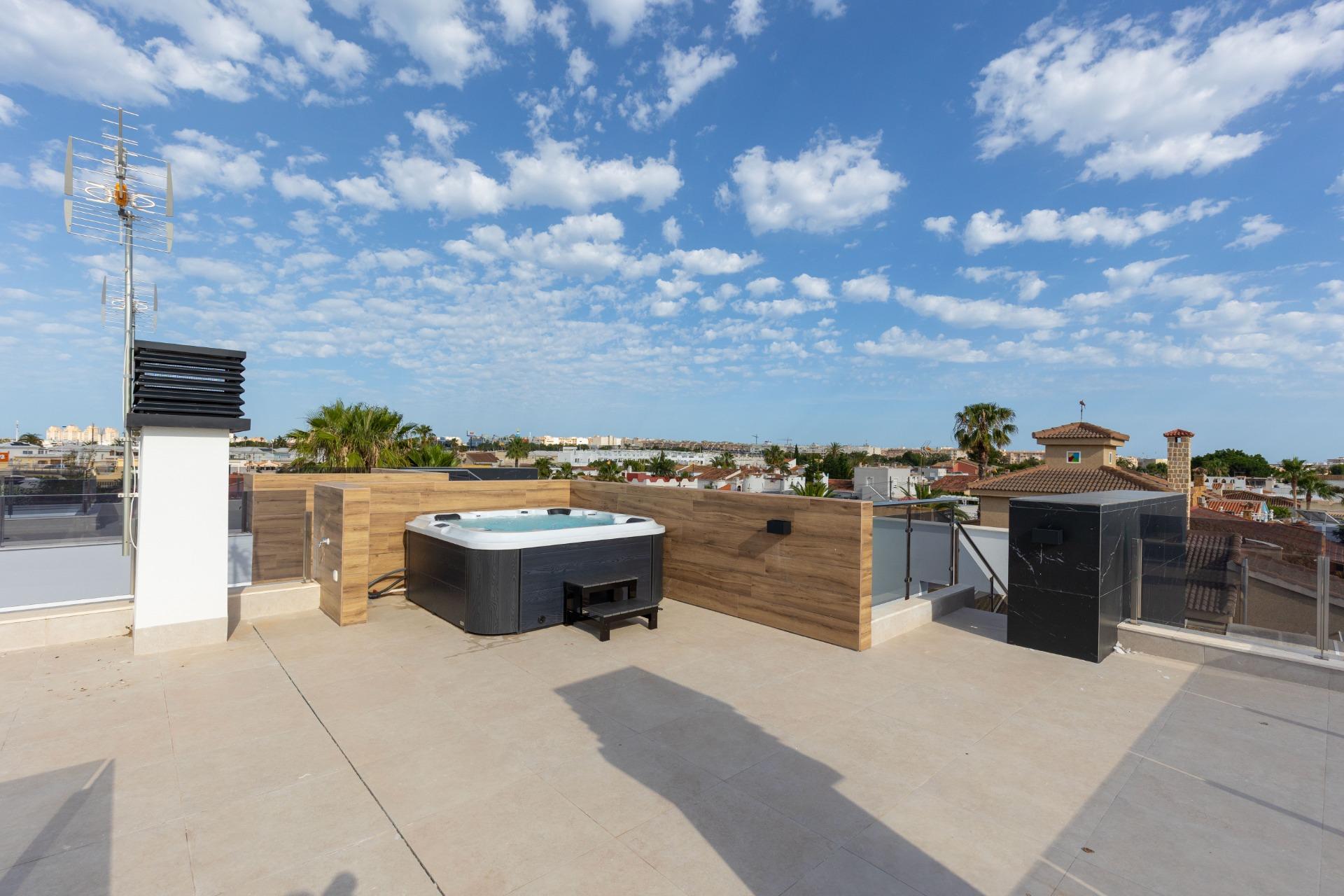 ¿Buscas una casa que lo tenga todo? Bienvenido a esta impresionante villa unifamiliar en la zona más exclusiva de Torrevieja, donde el diseño moderno se encuentra con el confort más inteligente. ¡Sí, has leído bien! Aquí no hablamos solo de una casa... hablamos de la casa.~~✨ Características principales:~✅ Llave en mano~✅ Piscina privada con bomba de calor y cascada de agua~✅ Domótica integral: controla toda la casa desde tu móvil~✅ Suelo radiante en los baños~✅ Aire acondicionado centralizado~✅ Electrodomésticos Bosch~✅ Agua caliente por aerotermia~✅ Persianas eléctricas y luces LED en cocina, salón y jardín~✅ Acabados de lujo: mármol porcelánico negro, armarios de madera, pintura aislante exterior, ventanas especiales fibra de vidrio~✅ Lago con cascada en la entrada (¡sí, un lago!)~~~ Distribución:~~-Parcela de 444 m²~~-Construcción de 126 m² distribuidos en 2 plantas + solárium~~-3 dormitorios (1 en planta baja + 2 en suite en planta alta)~~-3 baños en total~~-Salón amplio con cocina americana de diseño~~-Terraza y porche cubierto~~-Zona de Chill out~~- Fantástica piscina privada ~~-Solárium privado de 46 m² con jacuzzi y vistas despejadas~~
