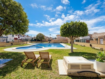 No es solo una casa, es el espacio donde tu familia respira. Ubicado en la codiciada zona Carrefour de Torrevieja, este adosado esquina ofrece privacidad y versatilidad absoluta. Imagina un jardín privado de 50 m² para disfrutar al aire libre. En la planta baja encontrarás un luminoso salón con cocina americana integrada y dos dormitorios exteriores ideales para descansar profundamente. La planta alta te sorprende con un dormitorio independiente que puede ser una suite privada perfecta para invitados o incluso como alquiler separado generando ingresos desde el primer día.~~Disfruta del solárium equipado con barbacoa perfecto para cada fin de semana, además se entrega completamente equipada; ¡solo trae tus maletas! El residencial también cuenta con piscina comunitaria ideal después de compras cercanas o días soleados.~~Con servicios a pasos pero situado en tranquilidad total: esta propiedad lo tiene todo por €180.000.~~ Las propiedades así son muy buscadas debido su alto potencial rentable ¿Te gustaría agendar visita? Comprueba cómo se siente vivir aquí!~