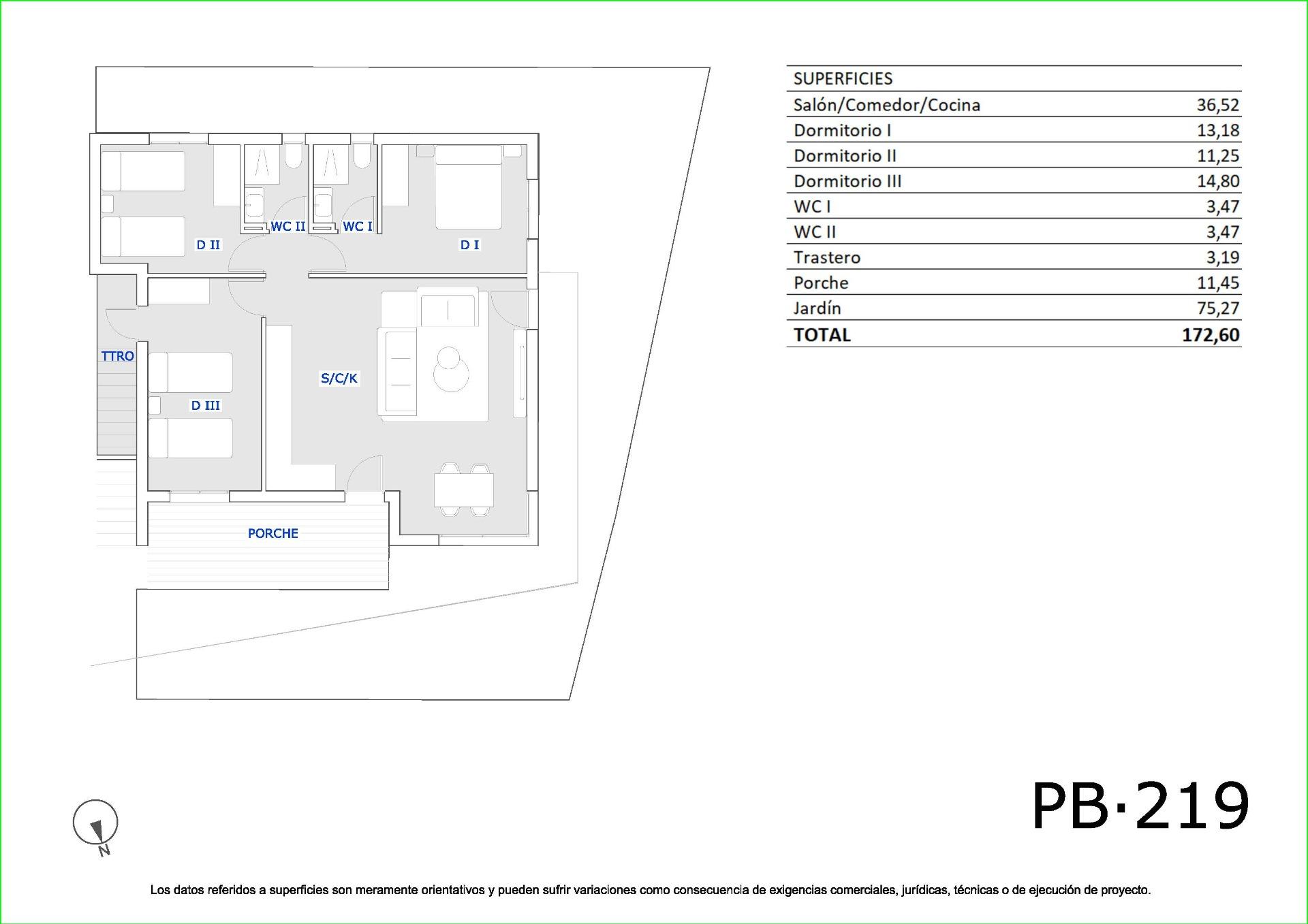Bungalows Modernos de Obra Nueva en San Miguel de Salinas con 3 Piscinas Comunitarias~~Estilo de Vida Mediterráneo en un Entorno Natural~Descubre este moderno residencial de bungalows de obra nueva a las afueras de San Miguel de Salinas, una localidad al sur de la provincia de Alicante, y a corta distancia andando a todos los servicios. Este encantador municipio combina la cercanía al mar con la tranquilidad de la naturaleza, convirtiéndose en un lugar ideal tanto para residencia habitual como para vacaciones.~~Opciones de Vivienda para Todos los Estilos de Vida~El residencial ofrece apartamentos tipo bungalow con 2 o 3 dormitorios distribuidos en dos opciones:~Planta baja con jardín privado y trastero~Planta alta con solárium privado~Cada vivienda ha sido diseñada con un enfoque moderno y funcional, proporcionando comodidad, luz natural y espacios exteriores para disfrutar del clima mediterráneo durante todo el año.~~Zonas Comunes para el Disfrute Familiar~Este complejo residencial está completamente cerrado y dispone de excelentes zonas comunes:~~3 piscinas comunitarias de gran tamaño para adultos y niños~Más de 3.400 m² de zonas verdes ajardinadas~Estas instalaciones hacen del residencial un espacio ideal para familias, parejas y jubilados que buscan calidad de vida en un entorno seguro y relajado.~~Calidades Modernas y Eficiencia Energética~Las viviendas cuentan con materiales de alta calidad y acabados cuidados:~Cocina completamente amueblada~Carpintería exterior con rotura de puente térmico y doble acristalamiento~Puerta de entrada blindada~Muebles de baño incluidos~Preinstalación de aire acondicionado por split en salón y dormitorios~~Excelente Ubicación Cerca de Golf, Playas y Servicios~San Miguel de Salinas se sitúa estratégicamente cerca de zonas turísticas y naturales:~Campos de golf como Vistabella, Las Colinas y Campoamor a menos de 10 km~Playas de Orihuela Costa a 11 km~Lagunas de Torrevieja y La Mata a solo 8 km~Centro comercial La Zenia Boulevard a 9 km~Aeropuerto de Alicante-Elche a 58 km (35 minutos en coche)~Aeropuerto Internacional de Murcia a 63 km (1 hora en coche)~~Tu Nuevo Hogar en la Costa Blanca~Estas viviendas representan una excelente oportunidad para quienes buscan calidad, comodidad y ubicación.~~Contáctanos ahora para más información o para agendar tu visita y dar el primer paso hacia tu vida en la Costa Blanca.~