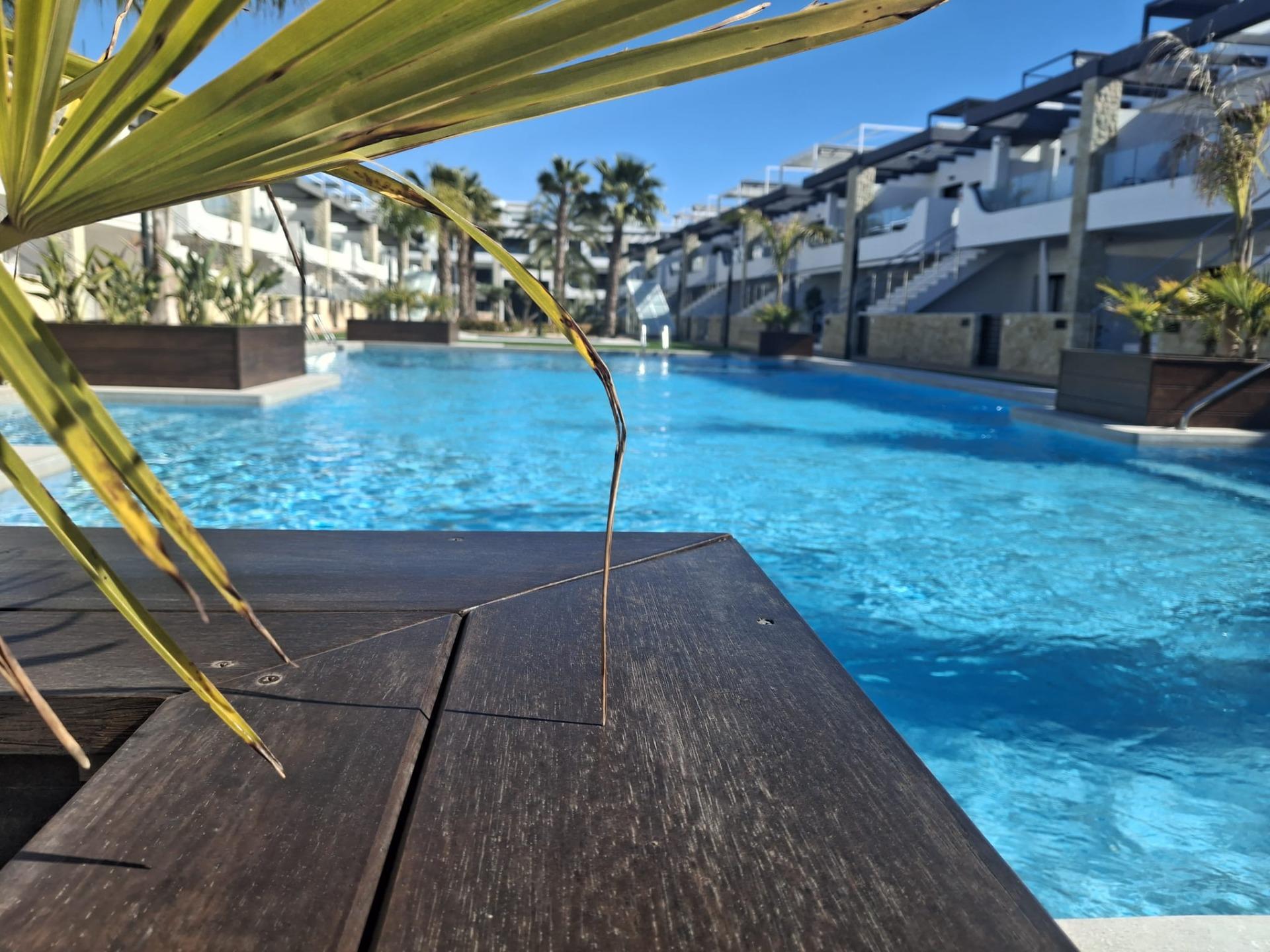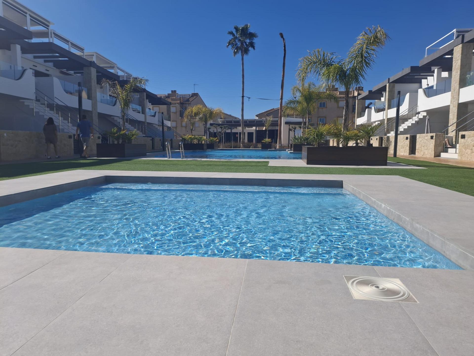 Nos complace presentarles este bungalow en planta alta en la popular zona de Punta Prima.~~La zona residencial se encuentra a pocos minutos a pie de las principales zonas de Punta Prima, donde encontrará bares, restaurantes, tiendas y supermercados, y también a pocos minutos más de la playa. Dentro de la residencia, encontrará relajantes piscinas y jacuzzi, parque infantil y gimnasio, así como una escalera que da acceso al aparcamiento subterráneo.~~Al llegar a la propiedad, notará que se trata de una parcela en esquina, lo que significa que no tiene vecinos en uno de los lados. Desde la terraza delantera, podrá disfrutar de vistas a las zonas comunes y también de otra escalera que da acceso al solárium privado, donde podrá disfrutar del sol durante todo el día y de vistas al mar. En el interior, encontrará un luminoso salón-comedor con una cocina americana totalmente equipada. Tres dormitorios y un baño, uno de los dormitorios con baño en suite y una pequeña terraza.~~La propiedad forma parte de la nueva zona residencial construida en 2024. Aún conserva el aroma a obra nueva y todas las cualidades originales. ¡Esta es su oportunidad de adquirir una propiedad seminueva en Punta Prima!~~GASTOS E IMPUESTOS NO INCLUIDOS. Aviso legal: La información aquí descrita es solo para fines informativos, no tiene validez legal y puede contener errores.~