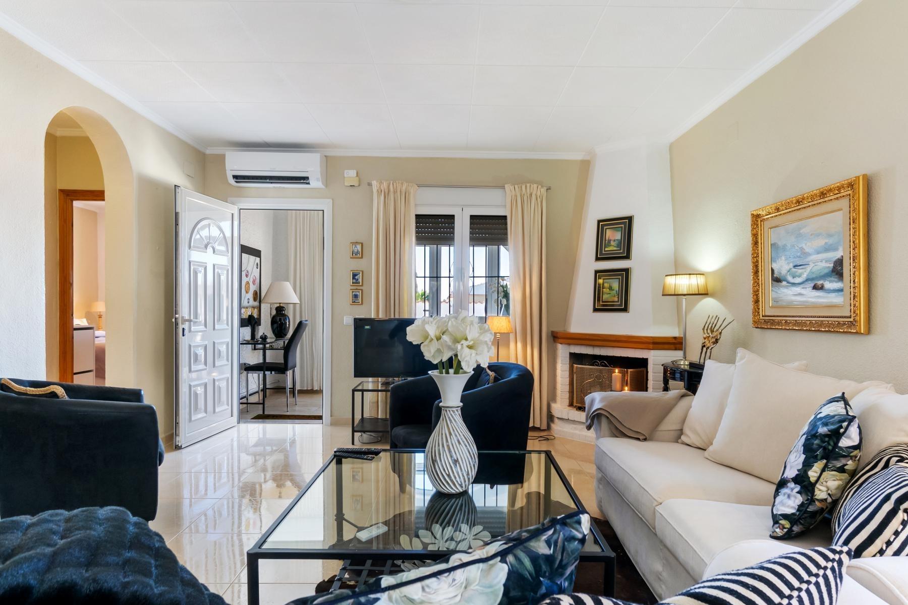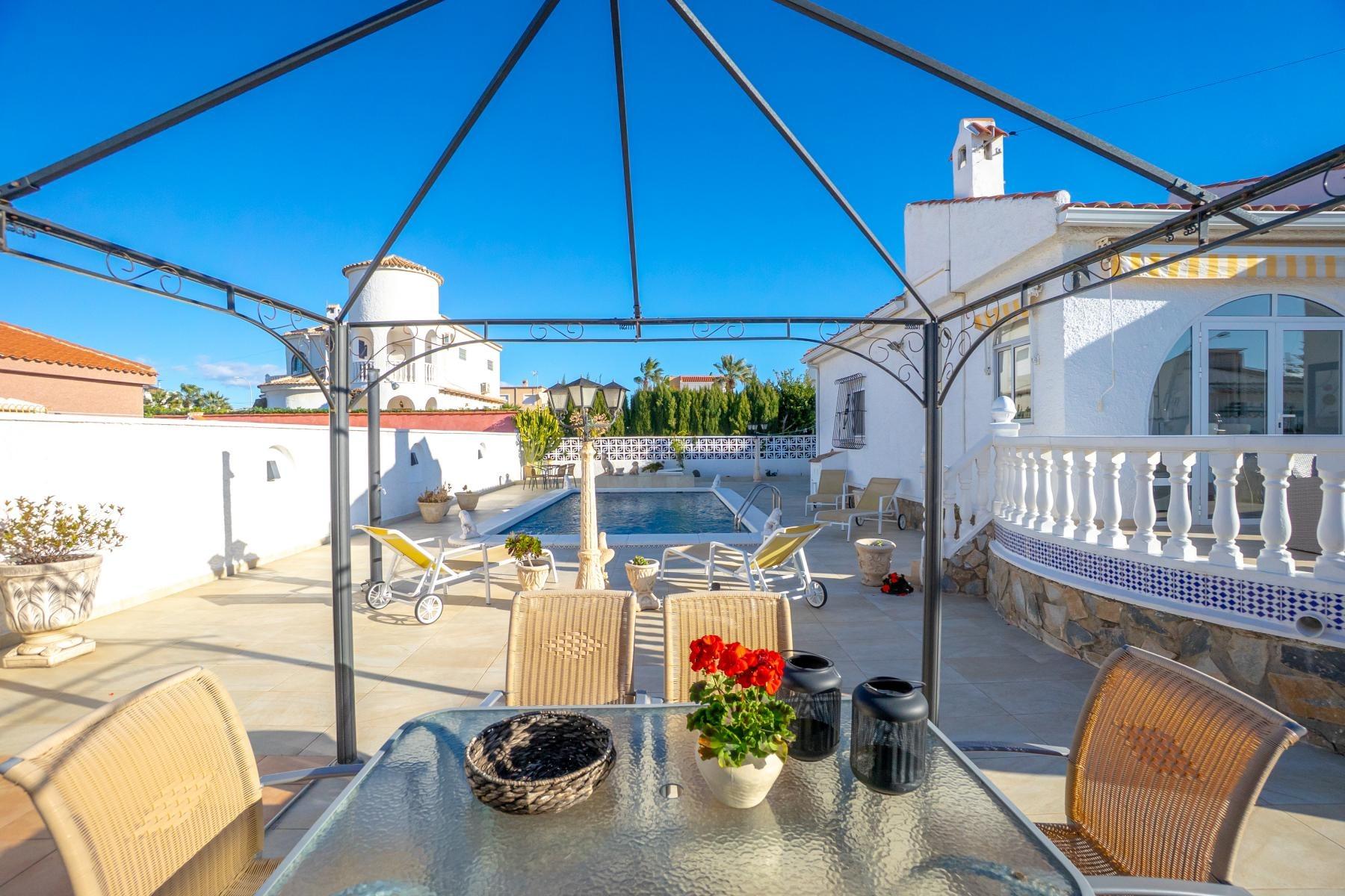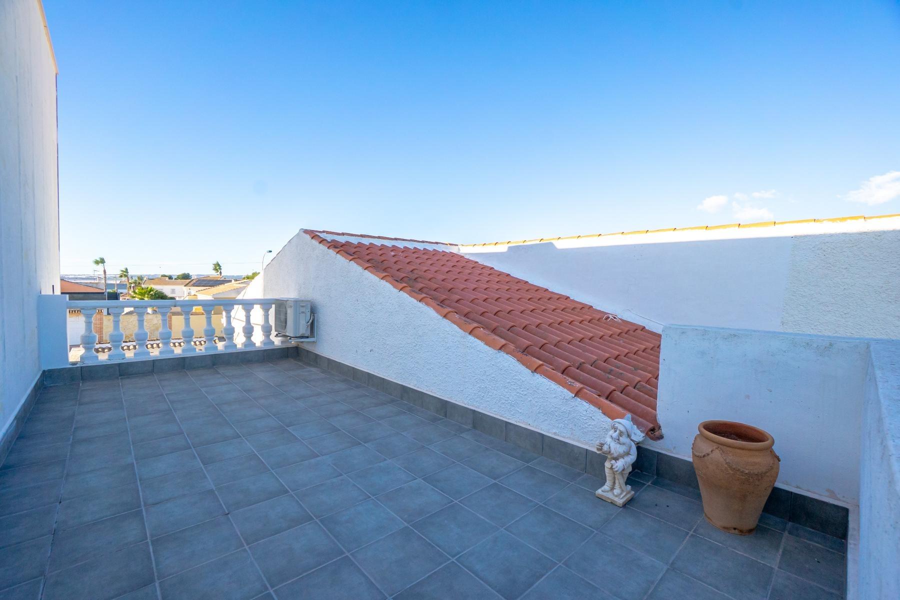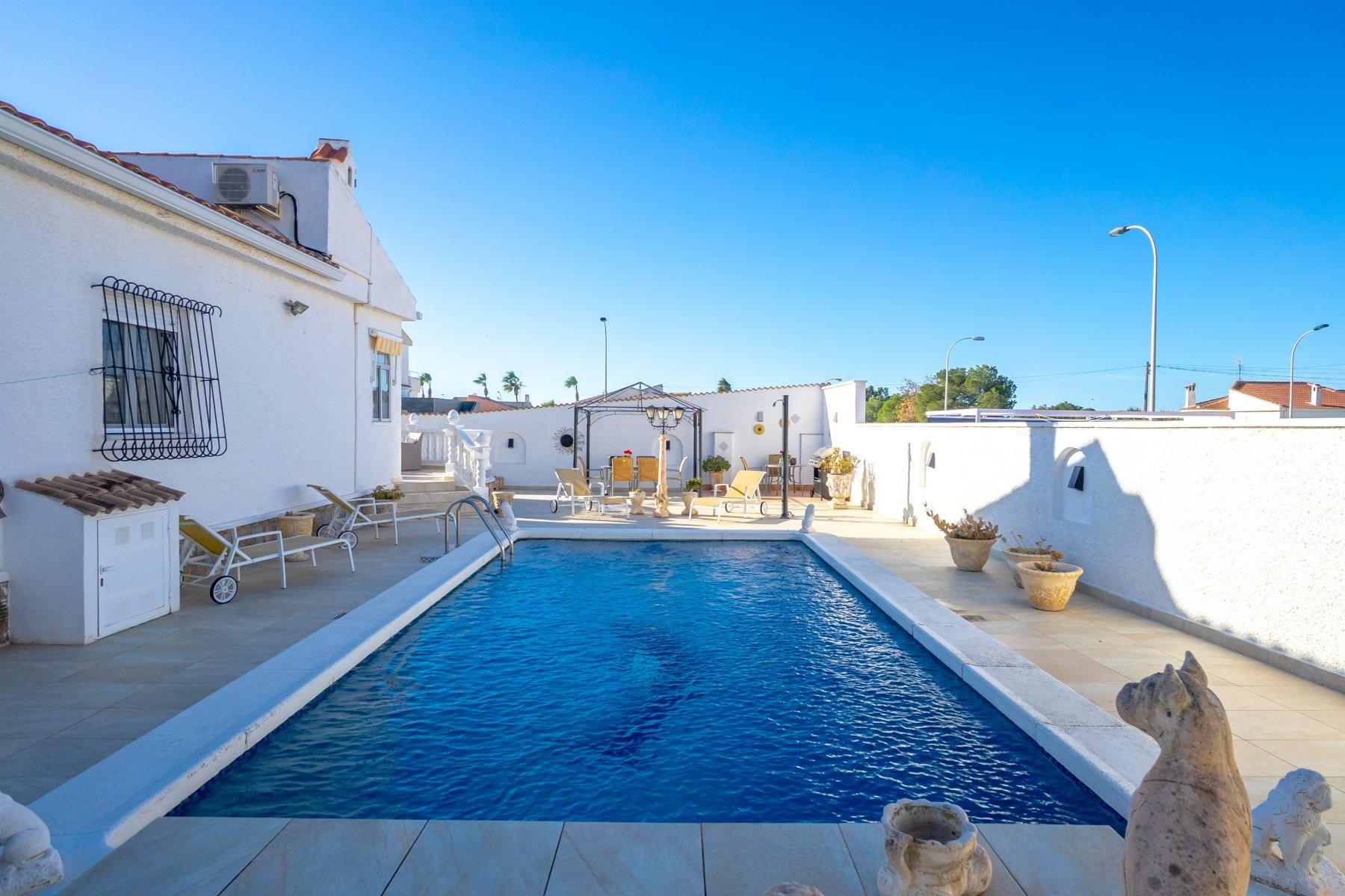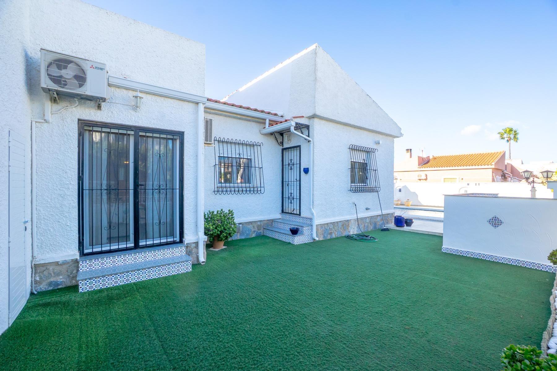 Encantador chalet pareado en El Chaparral, Torrevieja, ubicado en una de las zonas residenciales más demandadas por su tranquilidad y excelente acceso a todos los servicios. Supermercados, centro de salud, panadería, bancos, bares y restaurantes se encuentran a pocos minutos a pie, lo que lo convierte en una vivienda cómoda tanto para residencia habitual como vacacional.~~Las playas y el centro de Torrevieja están a menos de 7 minutos en coche, y la propiedad se sitúa muy cerca del nuevo parque de La Siesta, con amplias zonas verdes, áreas deportivas y espacios de recreo. Además, cuenta con proximidad a campos de golf y fácil conexión con la carretera principal.~~La vivienda se asienta sobre una parcela de 400 m², cuidadosamente aprovechada con zonas ajardinadas, piscina privada, cocina de verano, comedor exterior con barbacoa y garaje cerrado, ideal para disfrutar del clima mediterráneo durante todo el año.~~Distribuida en una sola planta, la casa se presenta en perfecto estado y lista para entrar a vivir. Dispone de una acogedora terraza acristalada, 3 dormitorios, uno de ellos en suite, un luminoso salón-comedor con chimenea y una cocina abierta completamente reformada, de estilo moderno y equipada con electrodomésticos.~~Se vende totalmente amueblada y equipada. Gracias a su orientación sur, la vivienda ofrece una excelente luminosidad y una agradable sensación de calidez durante todo el día. Mediante una escalera exterior se accede al solárium, un espacio adicional con múltiples posibilidades.~~Una propiedad ideal para crear su hogar permanente o disfrutarla como vivienda de vacaciones. Contáctenos para más información y reserve su visita para descubrir todo lo que esta vivienda puede ofrecerle.~