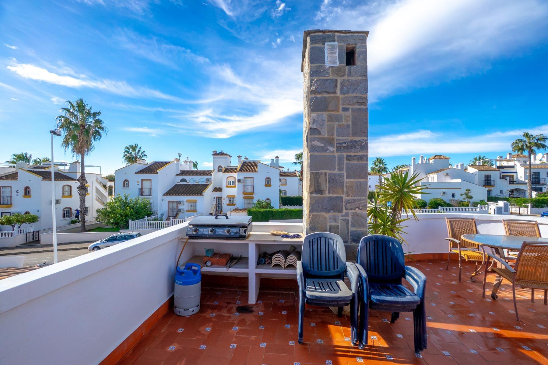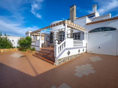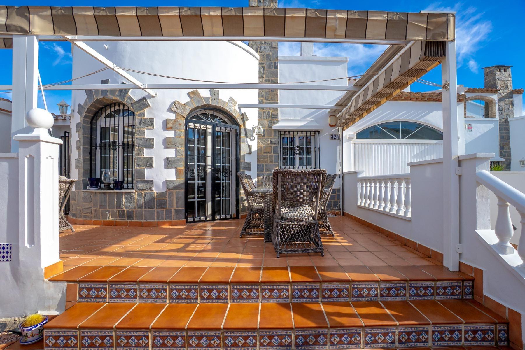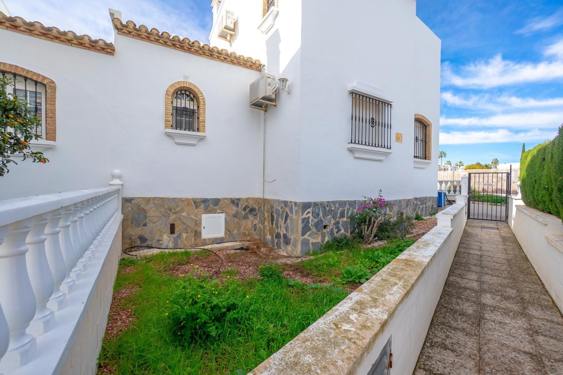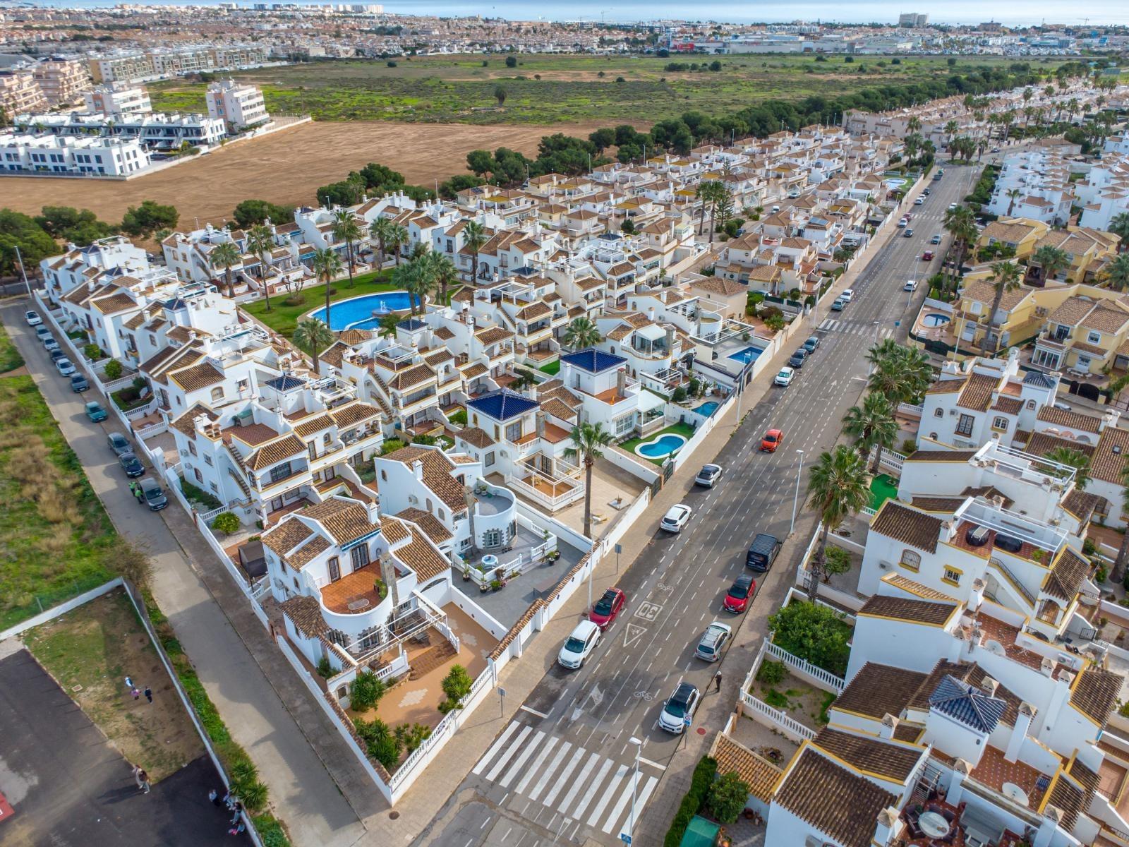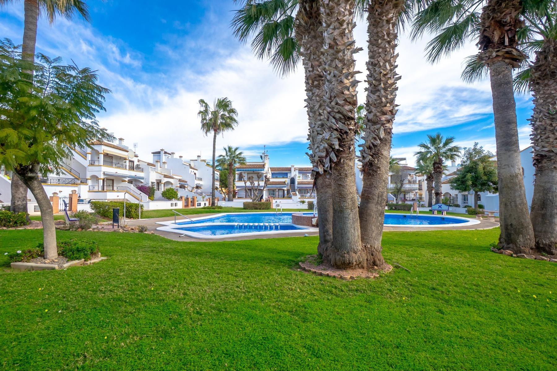 Ubicado en la consolidada zona residencial de Los Dolses, en Orihuela Costa, este chalet se encuentra en un entorno muy demandado tanto por clientela nacional como internacional, gracias a su amplia oferta de servicios y excelente conexión. A poca distancia se sitúan centros comerciales como Los Dolses y Zenia Boulevard, supermercados, restaurantes, entidades bancarias y prestigiosos campos de golf como Villamartín. Además, ofrece acceso rápido a las reconocidas playas de Orihuela Costa, entre ellas La Zenia, Cala Mosca y Cala Estaca.~~La vivienda forma parte de un complejo residencial privado que ofrece a sus residentes una piscina comunitaria de uso exclusivo, rodeada de zonas ajardinadas cuidadosamente mantenidas, ideales para el descanso y el disfrute en un entorno tranquilo.~~La propiedad se distribuye en dos plantas y destaca por su funcionalidad, luminosidad y confort.~En el exterior, un jardín embaldosado da la bienvenida a la vivienda, junto a una amplia terraza con toldos, perfecta para reuniones con familiares y amigos y para disfrutar del aire libre durante todo el año. Dispone además de un garaje cerrado, que aporta comodidad y seguridad para el estacionamiento.~~En la planta baja encontramos un espacioso salón-comedor con cocina americana totalmente equipada, creando un ambiente abierto y acogedor. En esta planta se sitúa también una zona de lavandería, dos dormitorios, uno de ellos con baño en suite, y un segundo baño completo, ambos reformados.~~La planta primera alberga dos dormitorios adicionales, uno de ellos con baño en suite y acceso directo a una magnífica terraza/solárium de aproximadamente 32 m², que cuenta con un práctico trastero y está acondicionada para disfrutar de barbacoas y momentos al aire libre.~~Con orientación sureste, la vivienda disfruta de abundante luz natural y se encuentra en muy buen estado de conservación. Es una opción ideal tanto como residencia habitual, por su cercanía a colegios y servicios, como vivienda vacacional. Se vende totalmente amueblada y equipada, lista para entrar a vivir.~~Contáctenos para más información o para concertar una visita y descubrir personalmente todo lo que esta propiedad puede ofrecerle.~