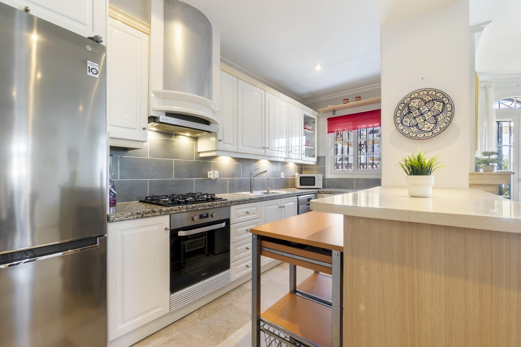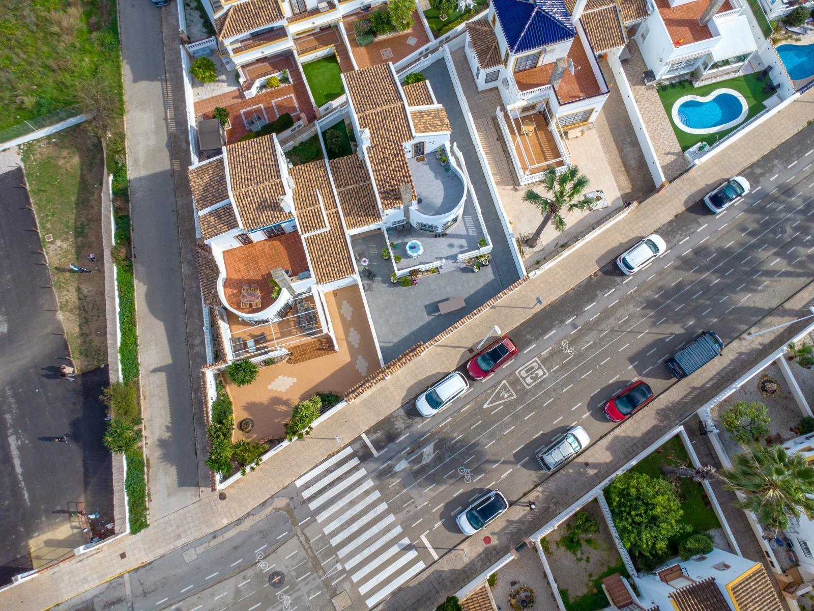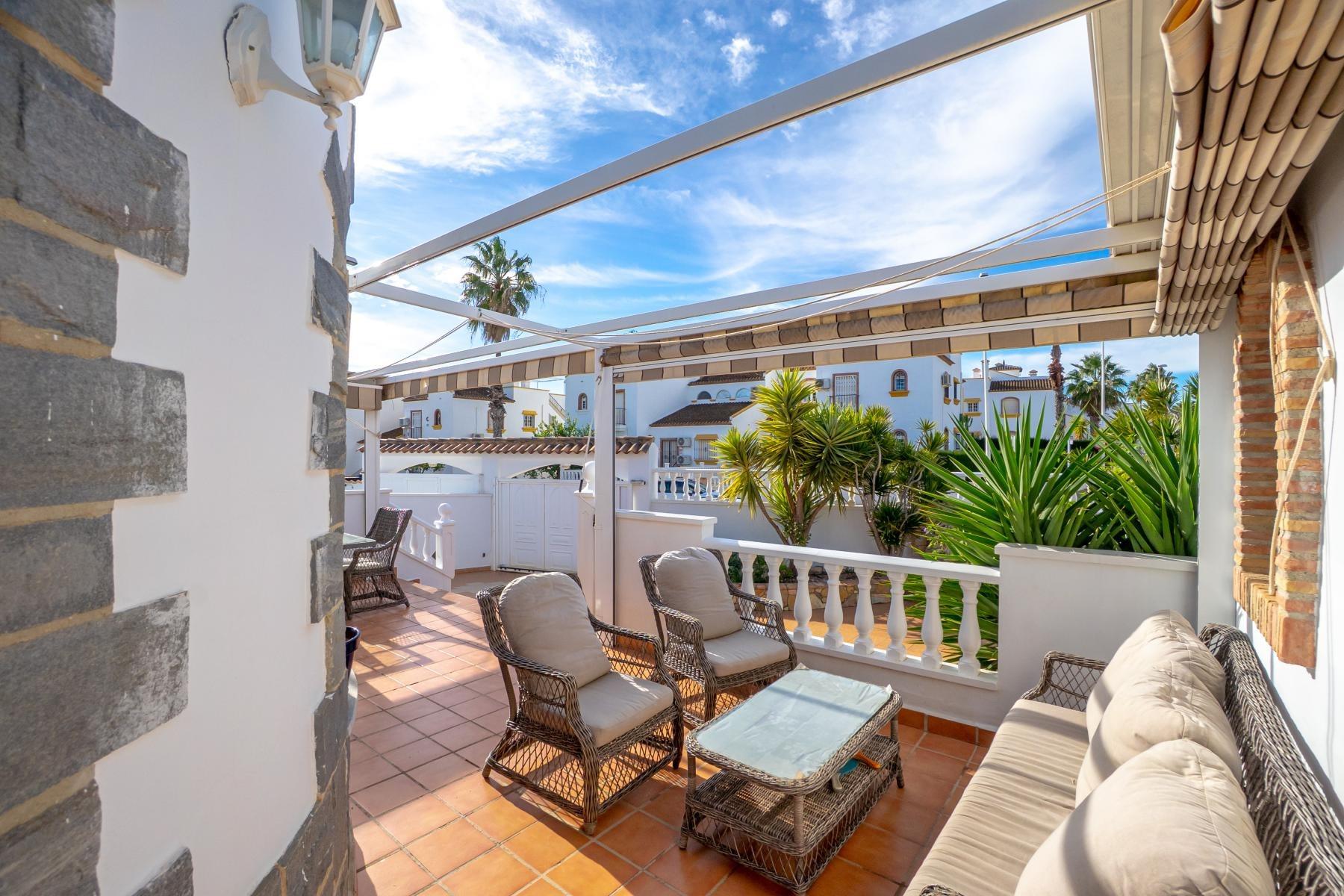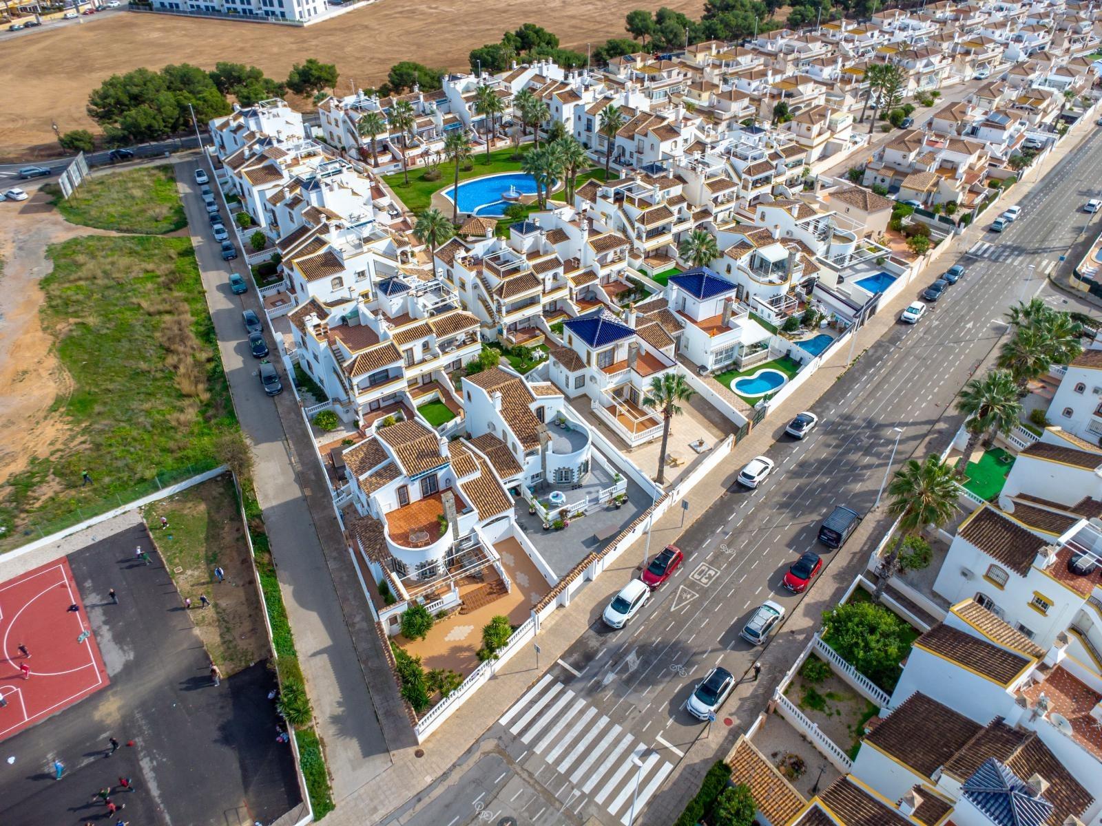 Ubicado en la consolidada zona residencial de Los Dolses, en Orihuela Costa, este chalet se encuentra en un entorno muy demandado tanto por clientela nacional como internacional, gracias a su amplia oferta de servicios y excelente conexión. A poca distancia se sitúan centros comerciales como Los Dolses y Zenia Boulevard, supermercados, restaurantes, entidades bancarias y prestigiosos campos de golf como Villamartín. Además, ofrece acceso rápido a las reconocidas playas de Orihuela Costa, entre ellas La Zenia, Cala Mosca y Cala Estaca.~~La vivienda forma parte de un complejo residencial privado que ofrece a sus residentes una piscina comunitaria de uso exclusivo, rodeada de zonas ajardinadas cuidadosamente mantenidas, ideales para el descanso y el disfrute en un entorno tranquilo.~~La propiedad se distribuye en dos plantas y destaca por su funcionalidad, luminosidad y confort.~En el exterior, un jardín embaldosado da la bienvenida a la vivienda, junto a una amplia terraza con toldos, perfecta para reuniones con familiares y amigos y para disfrutar del aire libre durante todo el año. Dispone además de un garaje cerrado, que aporta comodidad y seguridad para el estacionamiento.~~En la planta baja encontramos un espacioso salón-comedor con cocina americana totalmente equipada, creando un ambiente abierto y acogedor. En esta planta se sitúa también una zona de lavandería, dos dormitorios, uno de ellos con baño en suite, y un segundo baño completo, ambos reformados.~~La planta primera alberga dos dormitorios adicionales, uno de ellos con baño en suite y acceso directo a una magnífica terraza/solárium de aproximadamente 32 m², que cuenta con un práctico trastero y está acondicionada para disfrutar de barbacoas y momentos al aire libre.~~Con orientación sureste, la vivienda disfruta de abundante luz natural y se encuentra en muy buen estado de conservación. Es una opción ideal tanto como residencia habitual, por su cercanía a colegios y servicios, como vivienda vacacional. Se vende totalmente amueblada y equipada, lista para entrar a vivir.~~Contáctenos para más información o para concertar una visita y descubrir personalmente todo lo que esta propiedad puede ofrecerle.~
